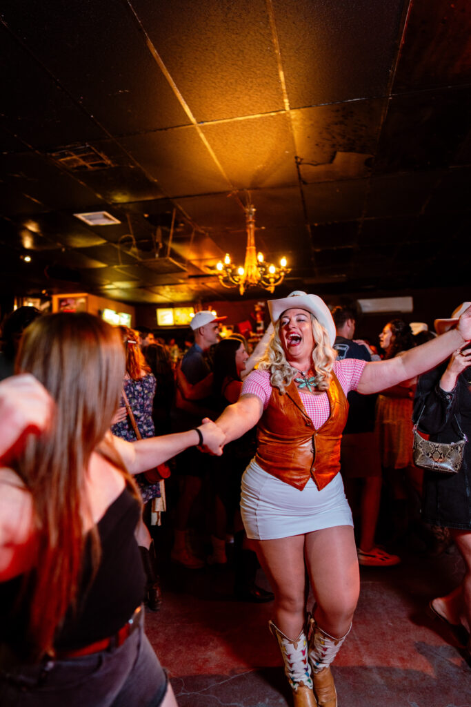 From flash mobs to team-building events for Fortune 500 companies, Beth brings the same energy everywhere she teaches by turning dance into a tool for connection. And while she’s proud of her Texas roots, being an eighth-generation Texan with a family history of two-stepping under the stars, she’s just as proud of how diverse her classes are. “All walks of life show up, and everyone’s welcome. It’s safe, it’s fun, and it’s free!”