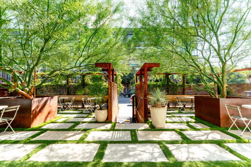 The vision was to create a cocktail bar with an elevated hotel lobby feel, inspired by the teams’ travels, but also welcoming. “ We call it ‘high-low,’” explains Jessica. “You can come and get champagne, but you also can get a Coors Banquet. It’s got the best of everything that Austin has to offer.”