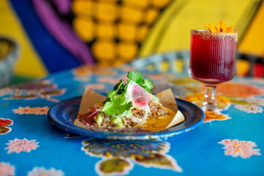Nixta’s menu highlights masa in many forms. Colorful chips are paired with salsa morita and duck fat refried beans, while a simple quesadilla is drizzled with chipotle mayo and avocado. The decadent duck carnitas taco is a crowd favorite that Mardanbigi describes as “rich and delicious, with the balance of the salsa cutting through the fat.” Aguilar, a vegetable aficionado, touts the Beet Tartare Tostada. “It has pepper, avocado, herbs, and a fresh horseradish that pops,” she says. She’s the artist behind the seasonal heirloom tomato tlayuda, a thin, pizza-like tortilla topped with fresh herbs and veggies from their on-site garden. “It just tastes like summertime,” Mardanbigi grins. “It’s like a breath of fresh air when you’re eating it.”
